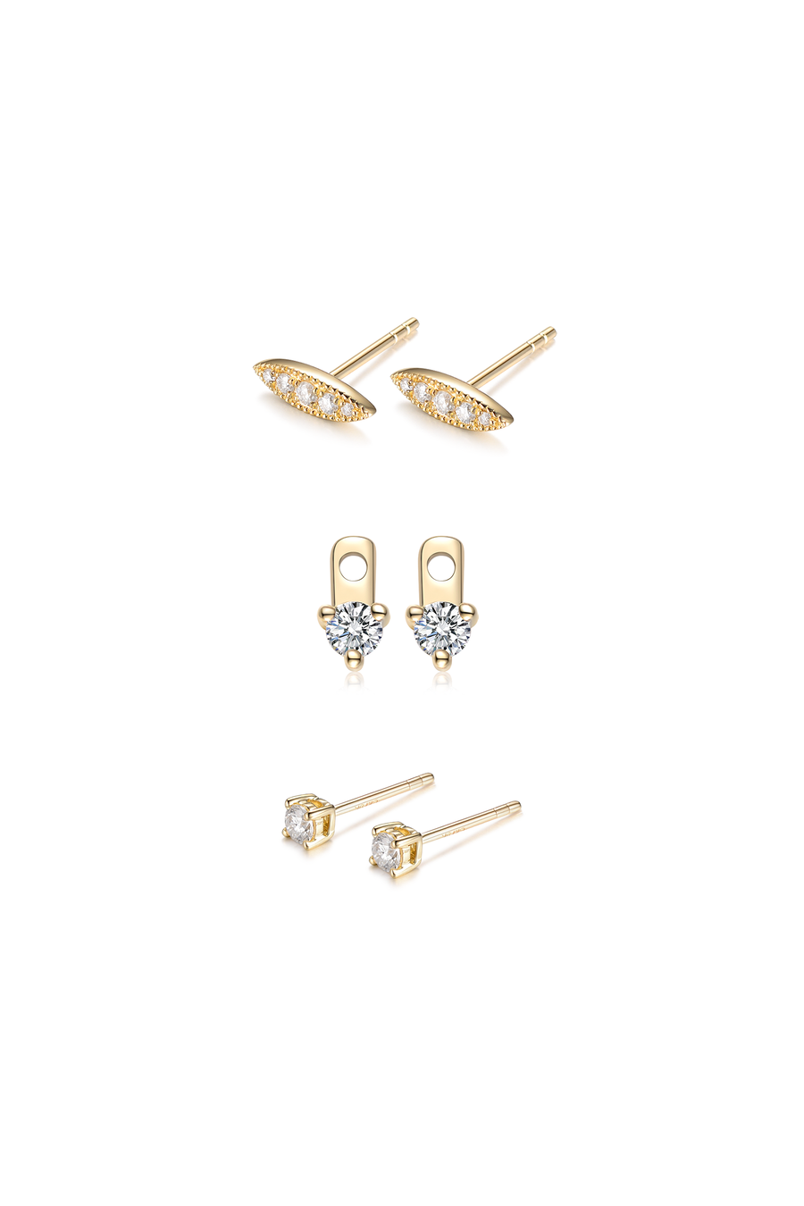 Introducing Emma, the chic minimalist. This set features a delicate Mini Diamond Earring paired with a sleek Diamond Marquise Earring. Pair with the Mini Diamond Earring Enhancer for an extra touch of refined sparkle. Celebrate the understated beauty of Emma - where effortless elegance never shouts.