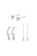 Meet Andrea - defined by delicate details and classic elegance. This set showcases our Waverly Huggie finished with a quivering diamond drop that perfectly complements our Pearl Earring Enhancer for a touch of tenderness.