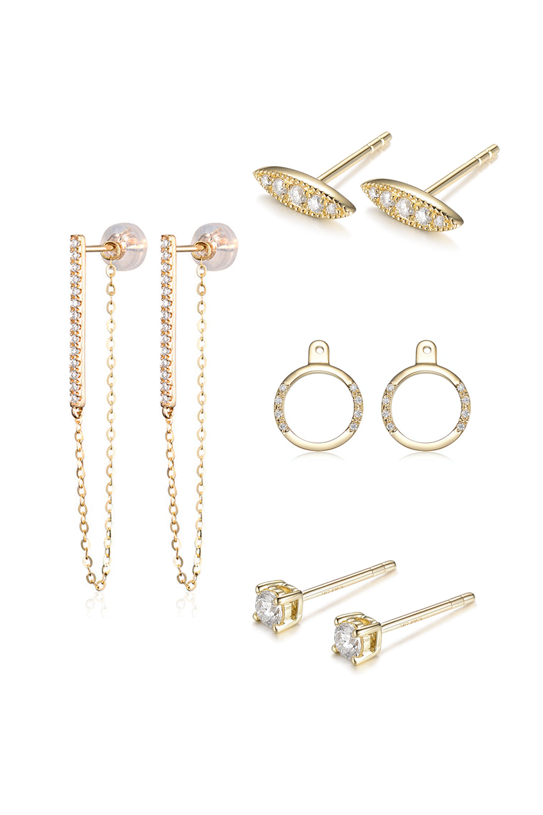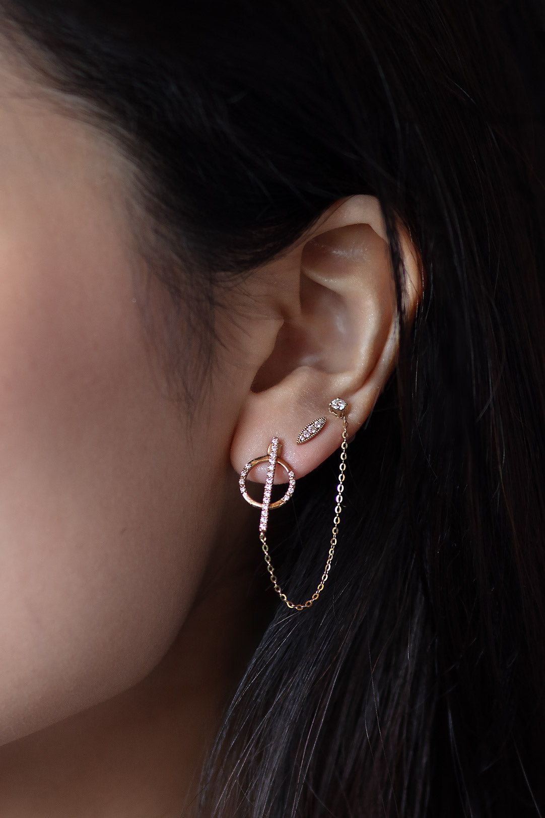 This exquisite earring set beautifully reflects your artistic flair. The delicate Diamond Bar Earring Enhancer symbolizes connection, while the Halo Earring Enhancer inserts a touch of grace. Pair with a sleek Diamond Marquise Earring and Mini Diamond Earring, for a refined sparkle.