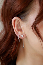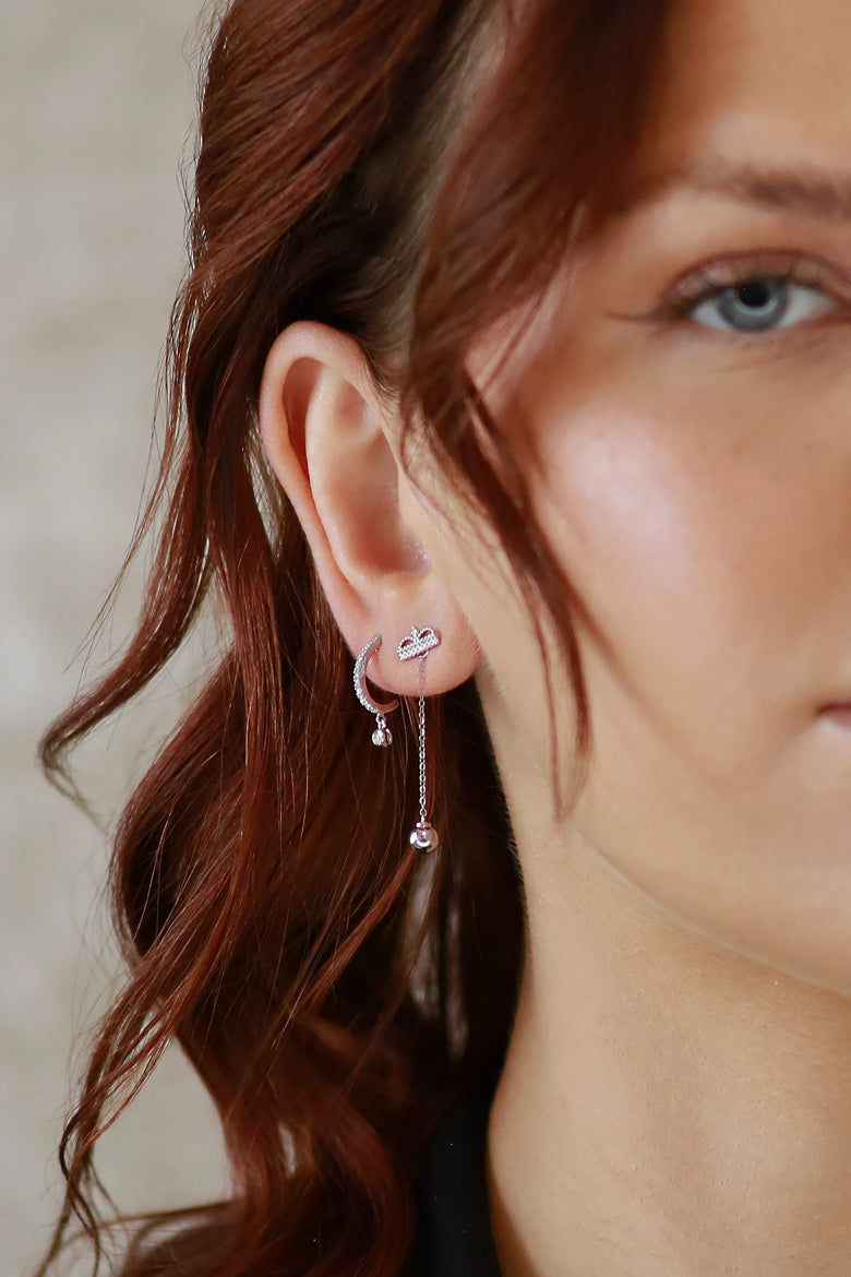 Meet Julia — she's a showstopper. Features Waverly Diamond Huggie, a striking diamond half hoop earring adorned with a quivering diamond that dances in the light. Customize with a charming Crown Earring or Diamond Pavé Medallion Earring for a brilliant shine. Take this look from day to night with a versatile Gold Drop Earring Enhancer.